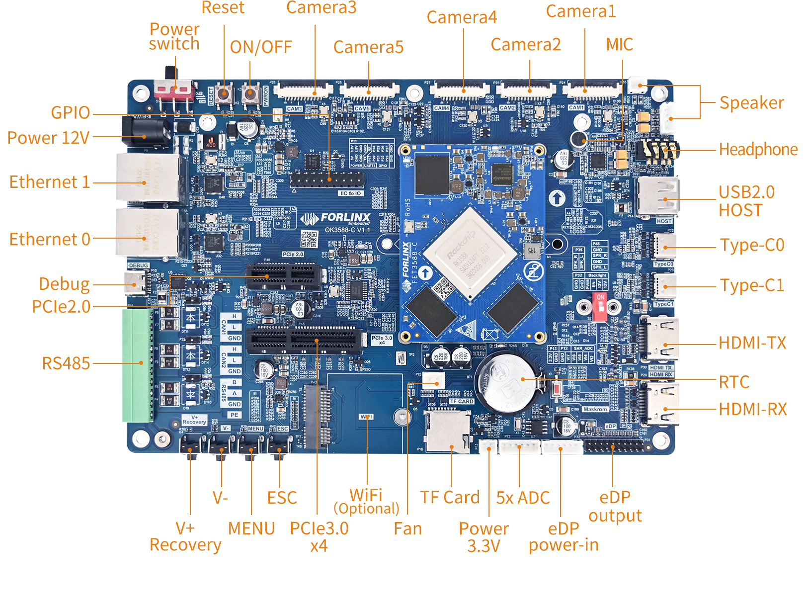 Reserves multiple peripheral interfaces for AI computing in embedded and edge systems;